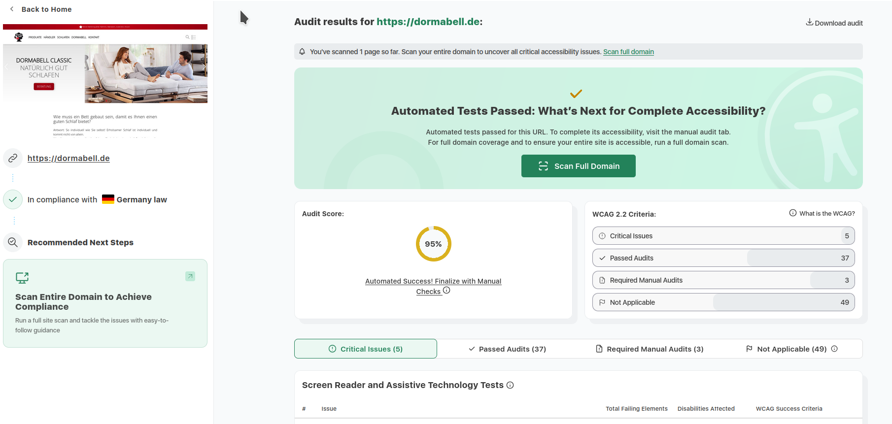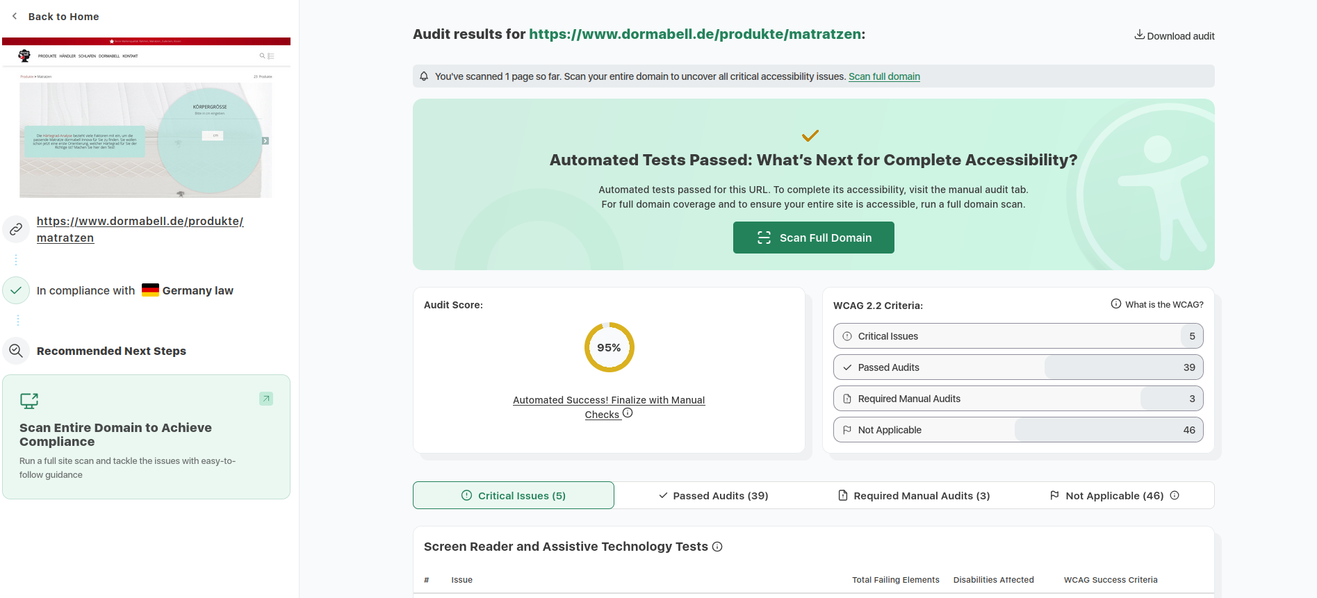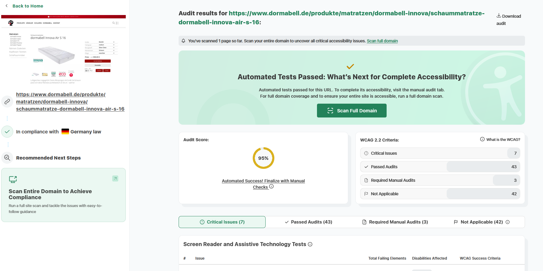 Zur Veranschaulichung unserer kontinuierlichen Überprüfungen der Barrierefreiheit haben wir Ergebnisse aus dem etablierten Tool accessibilitychecker.org dokumentiert. Diese Screenshots illustrieren exemplarisch identifizierte Barrieren sowie die erzielten Fortschritte. Im Folgenden finden Sie drei ausgewählte Screenshots solcher Prüfungen: